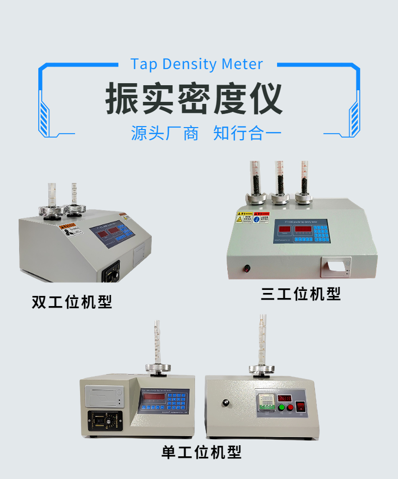 粉末振實密度測定儀規格比較多,市場上常用的一般有單工位,雙工位,三工位三種機型;這三種機型因配置不同又又所差異,但,大體操作的流程與工作原理是相同的,