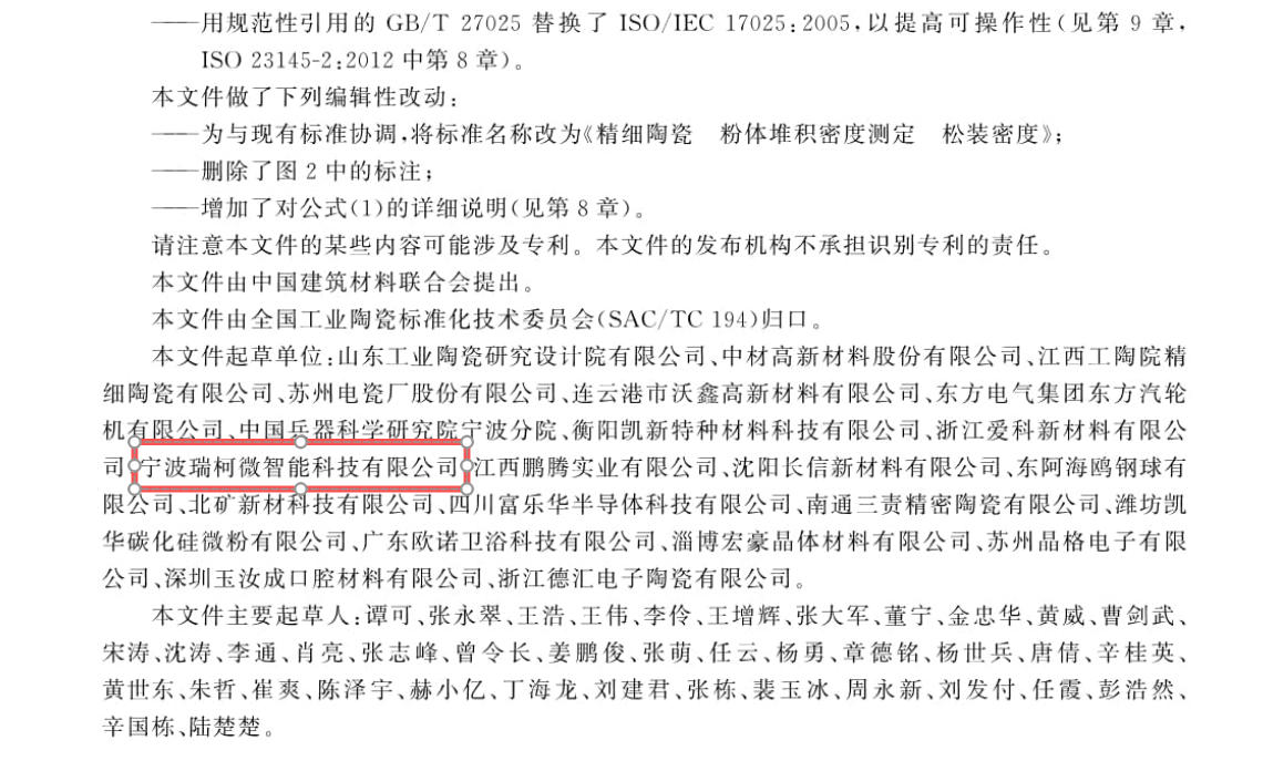 當(dāng) GB/T 45760-2025《精細(xì)陶瓷 粉體堆積密度測(cè)定 松裝密度》標(biāo)準(zhǔn)的發(fā)布公告出現(xiàn)在國(guó)家標(biāo)準(zhǔn)化管理委員會(huì)官網(wǎng)時(shí),寧波瑞柯微智能科技有限公司的研發(fā)團(tuán)隊(duì)難掩激動(dòng) —— 這支深耕粉體檢測(cè)技術(shù)十余年的隊(duì)伍,終于將實(shí)驗(yàn)室里的技術(shù)沉淀,寫入了行業(yè)發(fā)展的 "教科書"。
