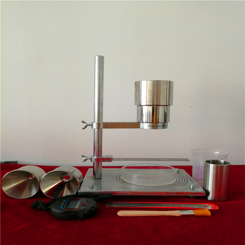 Composition: funnel, support bracket, stopwatch, ruler, brush, feed barrel, a level working platform, stainless steel cylinder, acrylic disc, angle measuring device.