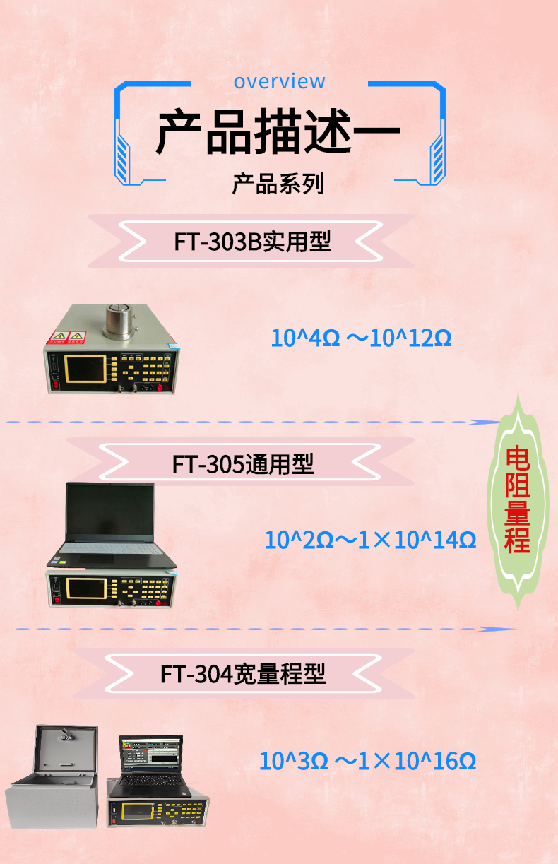 適用于測量粉末、粉體、顆粒物、氣體、電子元器件、介質材料、電線電纜、防靜電產品、如防靜電鞋、防靜電塑料橡膠制品、計算機房防靜電活動地板等電阻值等絕緣性能的檢驗和電子電器產品的絕緣電阻測量。