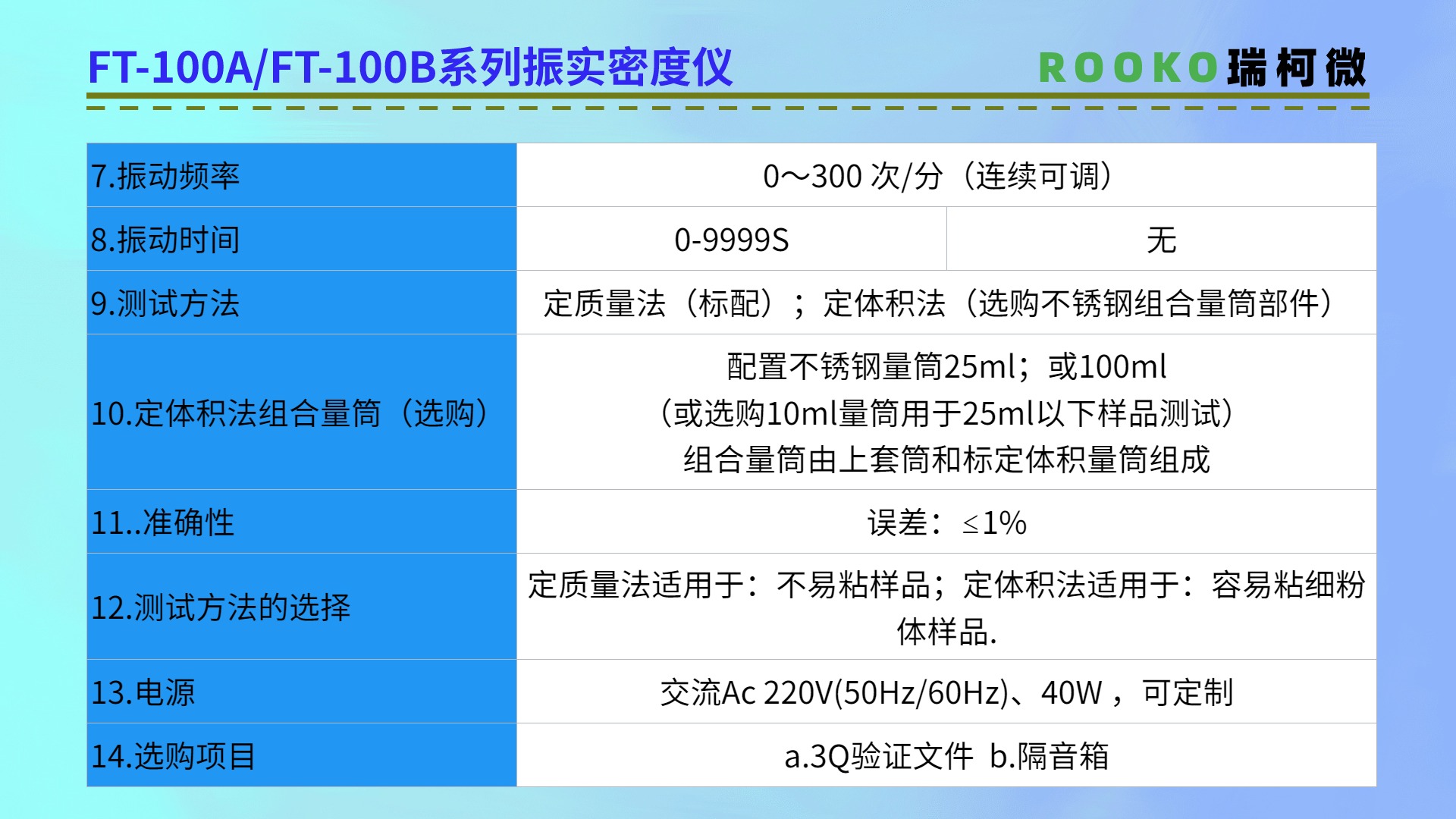 ROOKO瑞柯微專注于粉末/粉體/顆粒流動性測試儀,振實/松裝/堆積密度測定儀,休止角測定儀,安息角測定儀,粉末電阻率測試儀,粉體綜合特性測試儀,四探針/方阻/電阻率測試儀,材料體積/表面電阻率測試儀廠家提供技術資訊和解答
