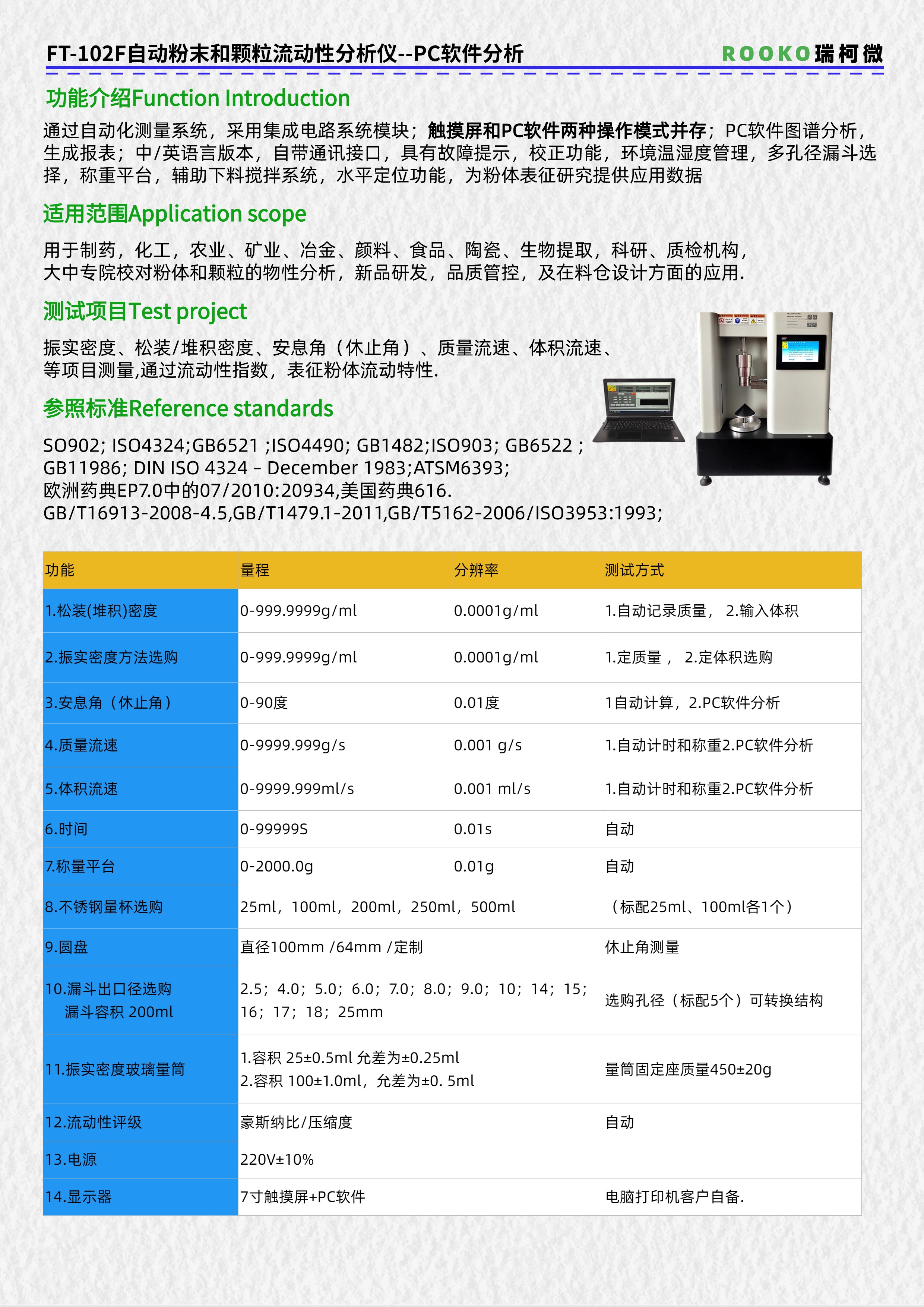 ROOKO瑞柯微專注于粉末/粉體/顆粒流動(dòng)性測(cè)試儀,振實(shí)/松裝/堆積密度測(cè)定儀,休止角測(cè)定儀,安息角測(cè)定儀,粉末電阻率測(cè)試儀,粉體綜合特性測(cè)試儀,四探針/方阻/電阻率測(cè)試儀,材料體積/表面電阻率測(cè)試儀廠家提供技術(shù)資訊和解答