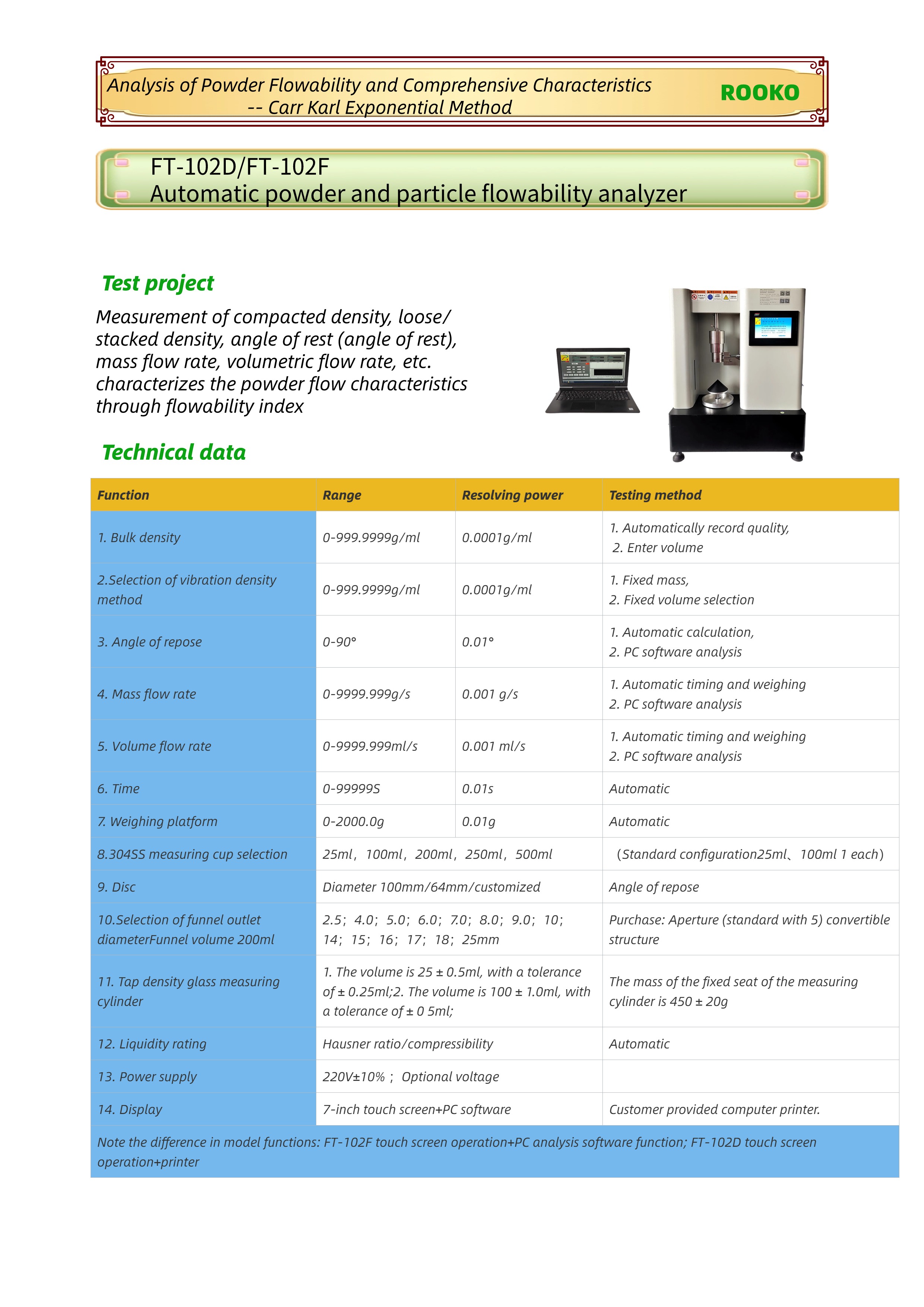 FT-102D/FT-102F自動(dòng)粉末和顆粒流動(dòng)性分析儀