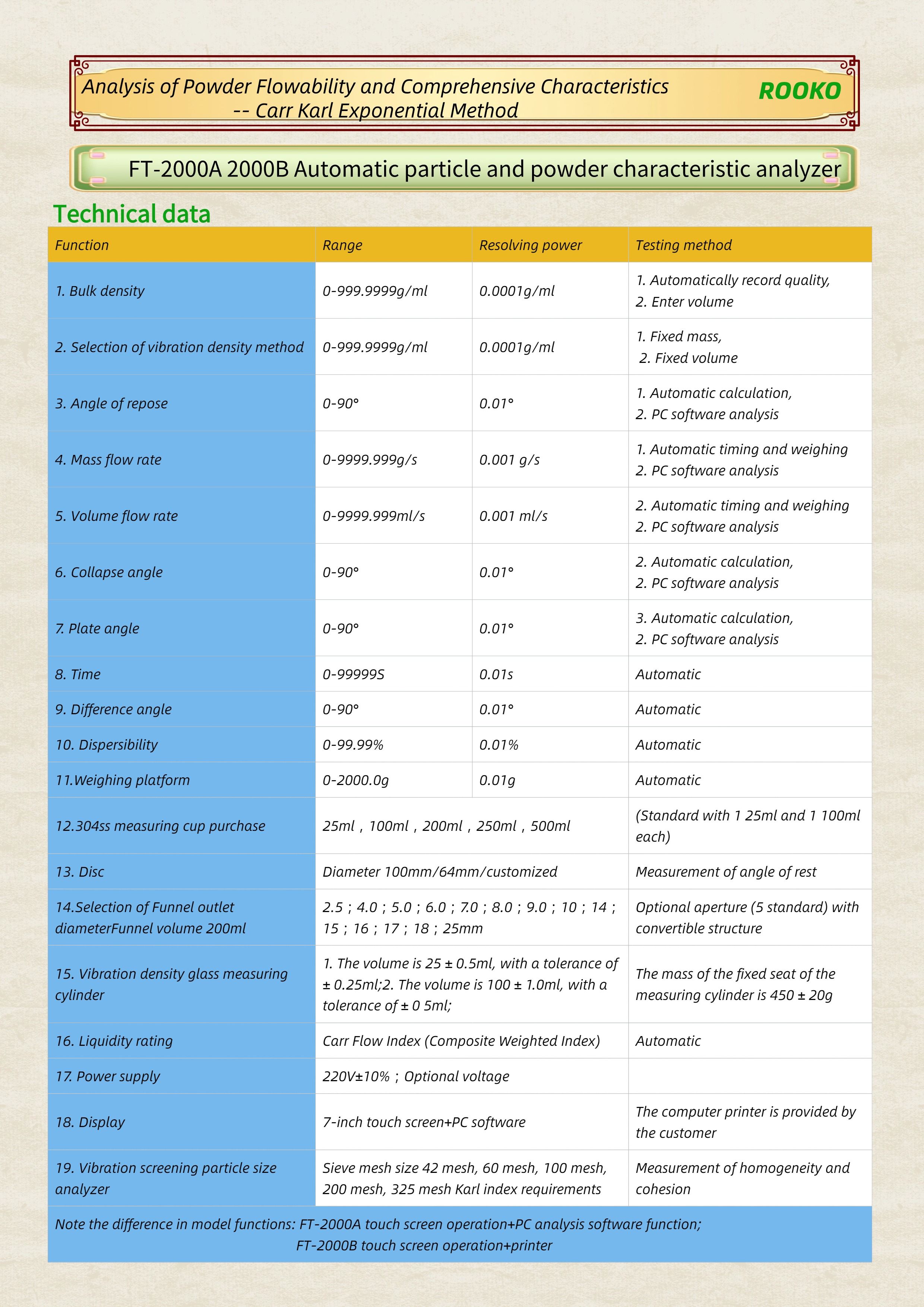 FT-2000A 2000B Automatic particle and powder characteristic analyzer