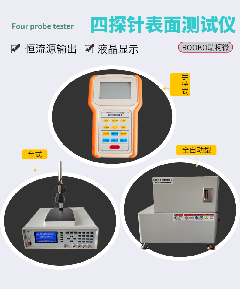 手持式外型結(jié)構(gòu),適用于車間生產(chǎn)、品管抽檢,外出攜帶測(cè)量的場(chǎng)所;也適用于中小型半導(dǎo)體材料生產(chǎn)企業(yè).