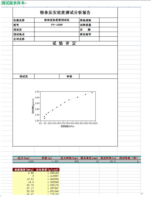 8. PC軟件可以獲得應力、粉體密度、時間、粉體屈服強度關系;過程數(shù)據(jù)的分析和曲線圖譜.